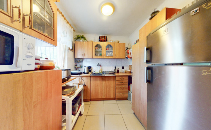 Dispozícia dolnej chaty je rozdelená na zádverie s prístupom do kúpeľne so sprchovým kútom, umývadlom, WC a do izby funkčne prepojenej s kuchyňou. Chata je aj čiastočne podpivničená. Pre celoročné nerušené posedenie slúži zasklená terasa s krásnym výhľadom na hrad Pajštún.