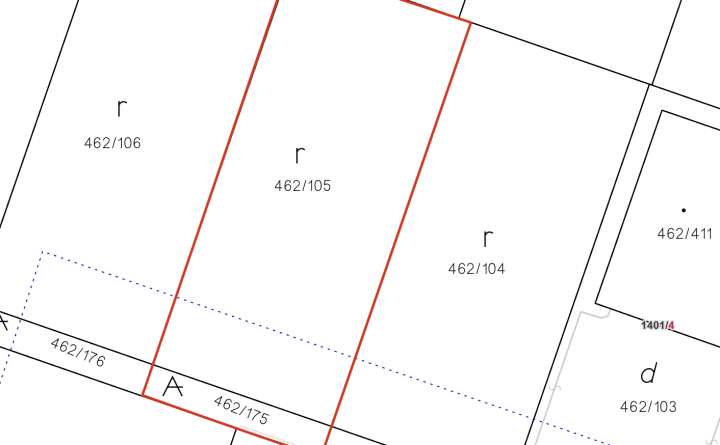 Pozemok je oplotený z troch strán a jeho rozmery sú: šírka -19 m, dĺžka - 43 m.