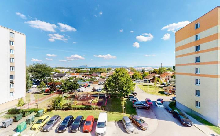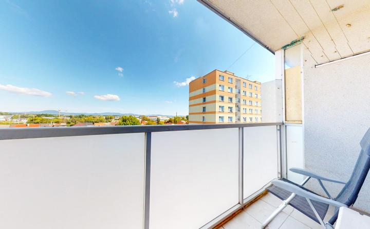 Byt sa nachádza na piatom poschodí v sedemposchodovom panelovom dome. Podlahová plocha bytu je 68,5 m2.