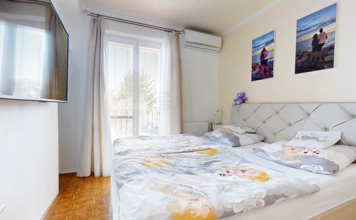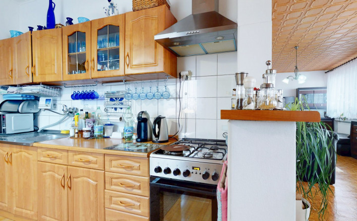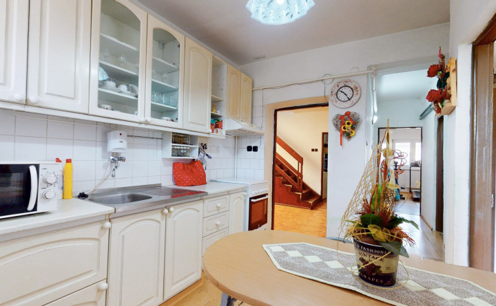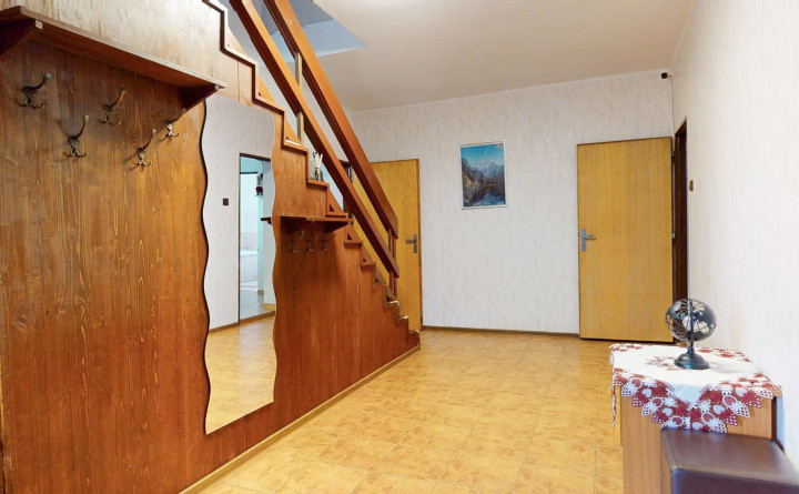 Prízemie (87 m2): zádverie, chodba, schodisko, samostatná kuchyňa, kúpeľňa s WC, technická miestnosť, komora, obývačka a 2x izba. Poschodie (98 m2) : schodisko, chodba, izba so šatníkom a prístupom na balkón, izba s balkónom, kúpeľňa s vaňou a s WC, špajza, kuchyňa, jedáleň a obývacia izba s prístupom na balkón.