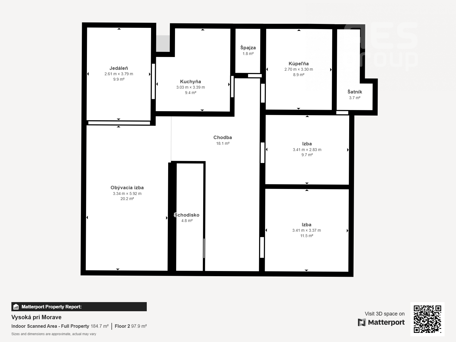 Dom má výmeru obytnej plochy 185 m2 a je dvojpodlažný s pripojením na všetky IS.