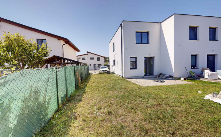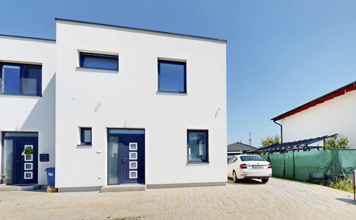 Dom je postavený z tradičných materiálov (tehla 30 cm so zateplením 15 cm polystyrén), strecha fatrafol fólia + štrkový zásyp, sadrové omietky, betónový poter, rozvody TV (káblové rozvody), plynový kotol kondenzačný + 120l. zásobník vody, podlahové kúrenie v celom dome,. Plastové okná 3 sklo (interiér biela, exteriér antracit). Predpríprava na vonkajšie žalúzie a klimatizáciu.