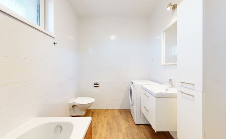 2NP: chodba, schodisko, 3 x spálna a kúpeľňa s WC.