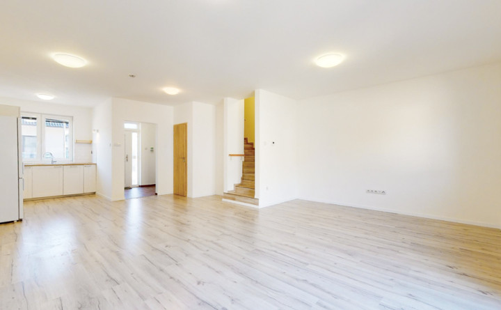 Byt má výmeru 94 m2 a je dvojpodlažný.