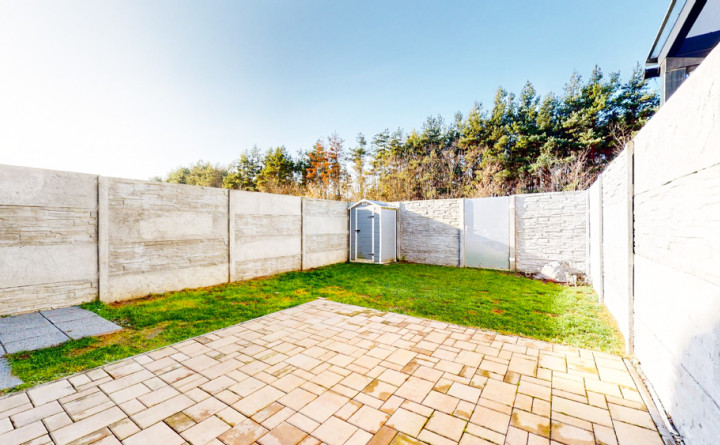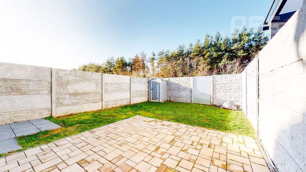 Záhradka o výmere 57 m2 je prístupná z obývačky. Na záhradke sa nachádza terasa formou spevnenou plochou zo zámkovej dlažby. Na odkladanie vecí slúžiacich nie len na údržbu okolo domu slúži záhradný domček umiestnený v rohu záhrady.
