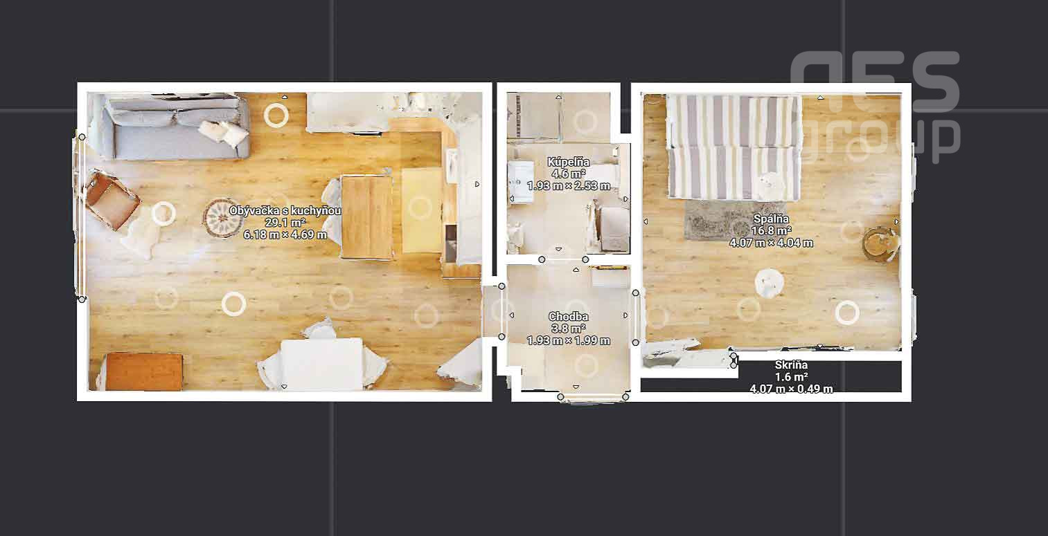 3D obhliadka tu: https://my.matterport.com/show/?m=W16CJAM8Xm1