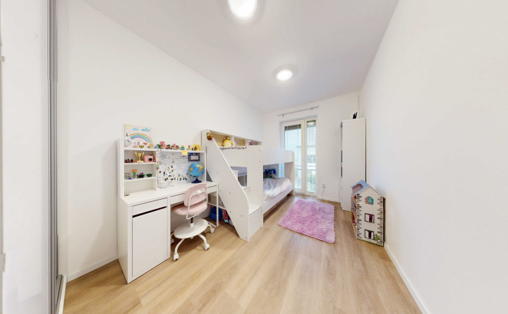 2NP: chodba, schodisko, 2x detská izba, 1x spálňa a kúpeľňa s WC. Spálňa vybavená šatníkom, z jednej detskej izby je prístupný balkón o výmere 3 m2.