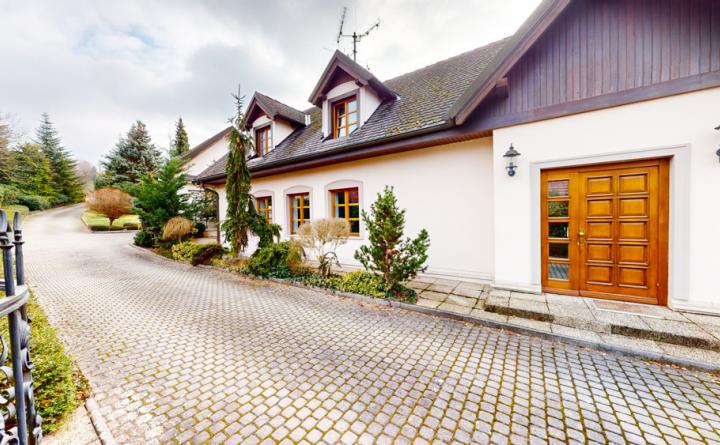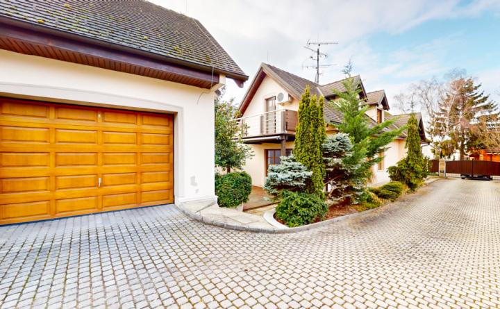 Dom je trojpodlažný o výmere 212 m2 a vedie k nemu súkromná príjazdová cesta z ktorej je prístupná aj garáž na 2 autá.