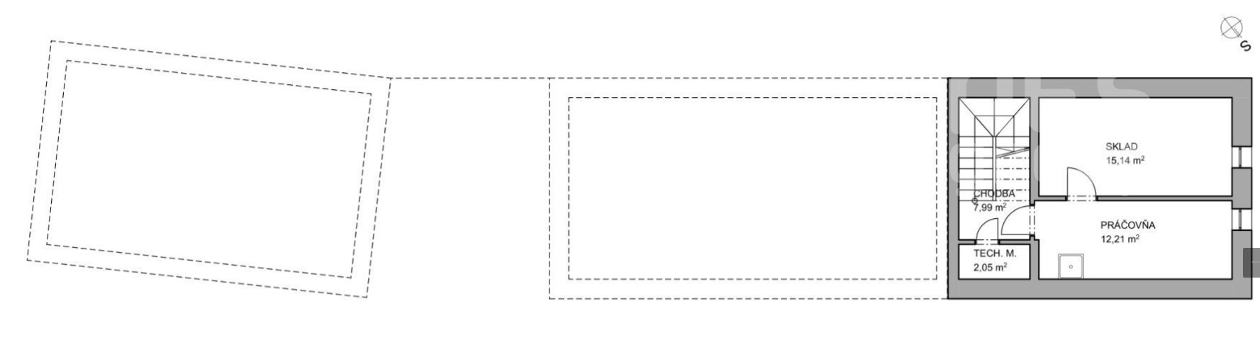 Suterén: sklad, práčovňa a komora