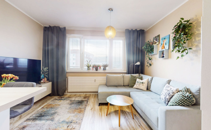 DISPOZÍCIA: vstupná chodba, spálňa, obývačka spojená s kuchyňou, kúpeľňa a samostatné WC. K bytu prislúcha pivničná kobka umiestnená v suteréne bytového domu.