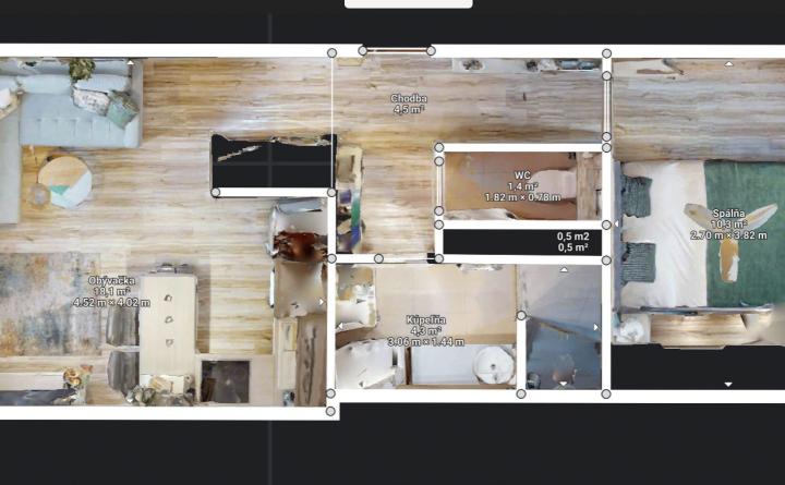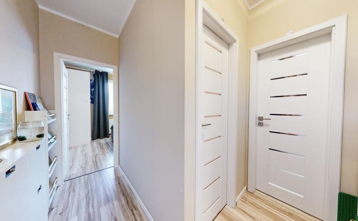 ŠTANDARD VYBAVENIA: pri rekonštrukcii bytu vytvorené odkladacie priestory formou vstavaných skríň umiestnených na chodbe a v spálni. Zmenou dispozície prešla aj kúpeľňa a WC. Nadčasové materiály použité pri rekonštrukcii bytu podtrhujú trendy moderného bývania. (viď 3d obhliadky https://my.matterport.com/show/?m=RebKEfyXJJR)