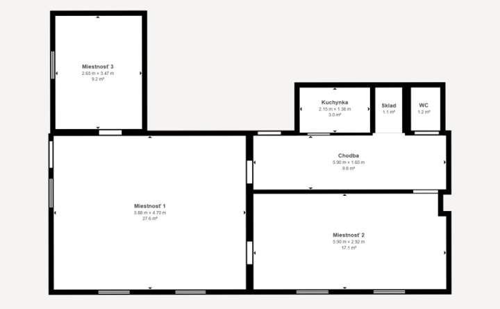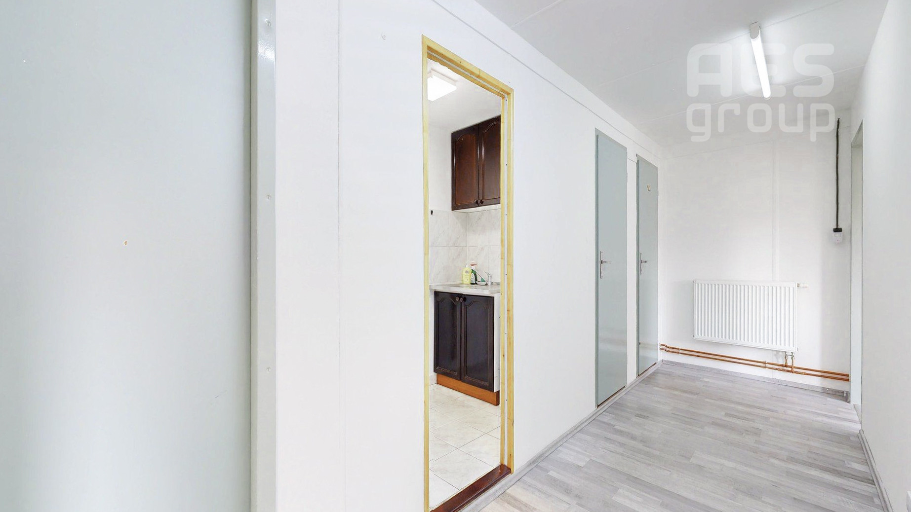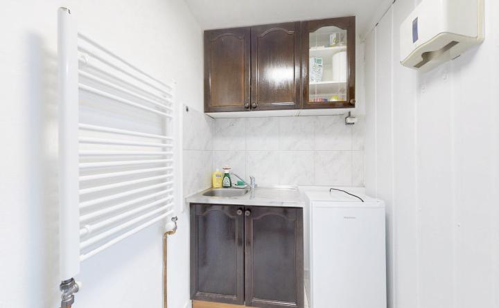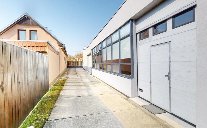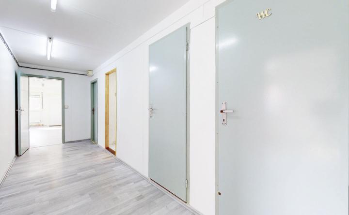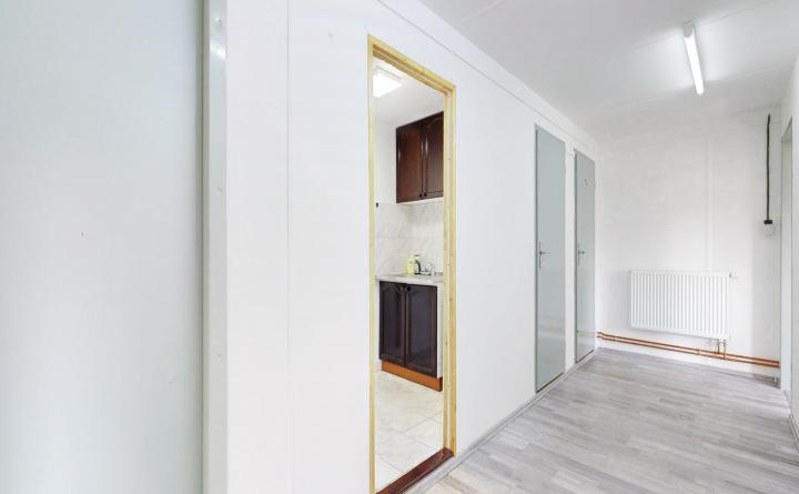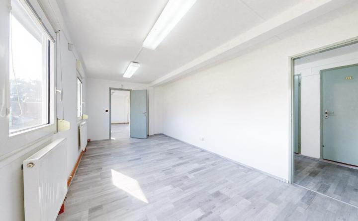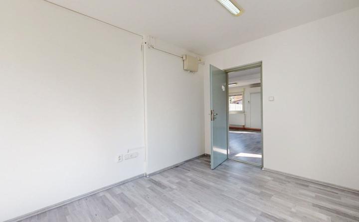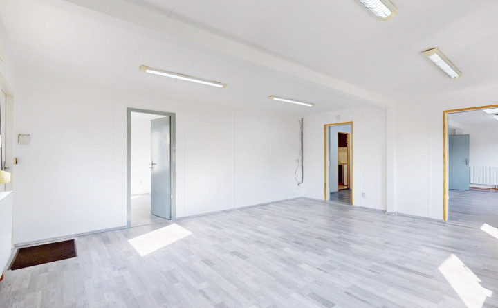 Priestory o celkovej výmere 69 m2 pozostávajú z troch kancelárskych miestností, chodby, kuchynky, menšieho skladu a WC, s možnosťou doprenajatia a prepojenia veľkého skladu o výmere 53 m2 s bránou. Vstup k objektu je zabezpečený cez elektrickú bránu s možnosťou parkovania priamo pri kancelárskych priestoroch.