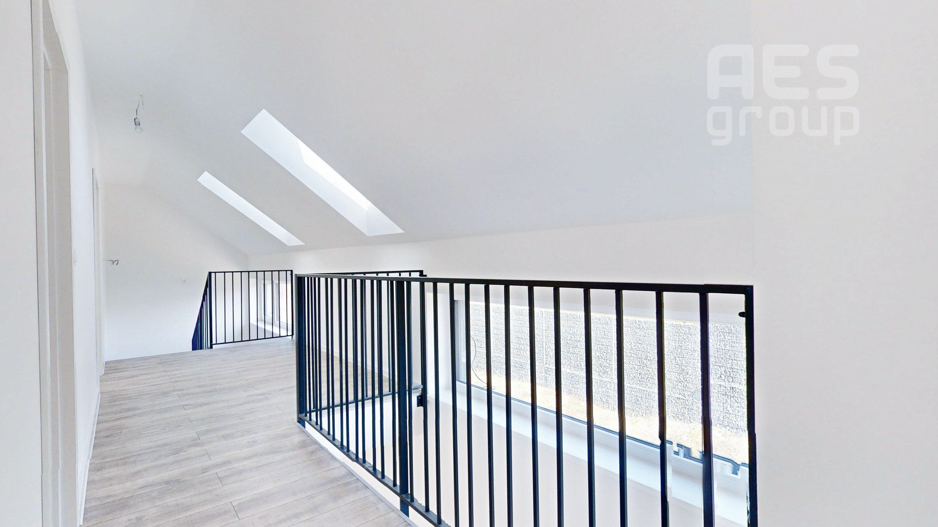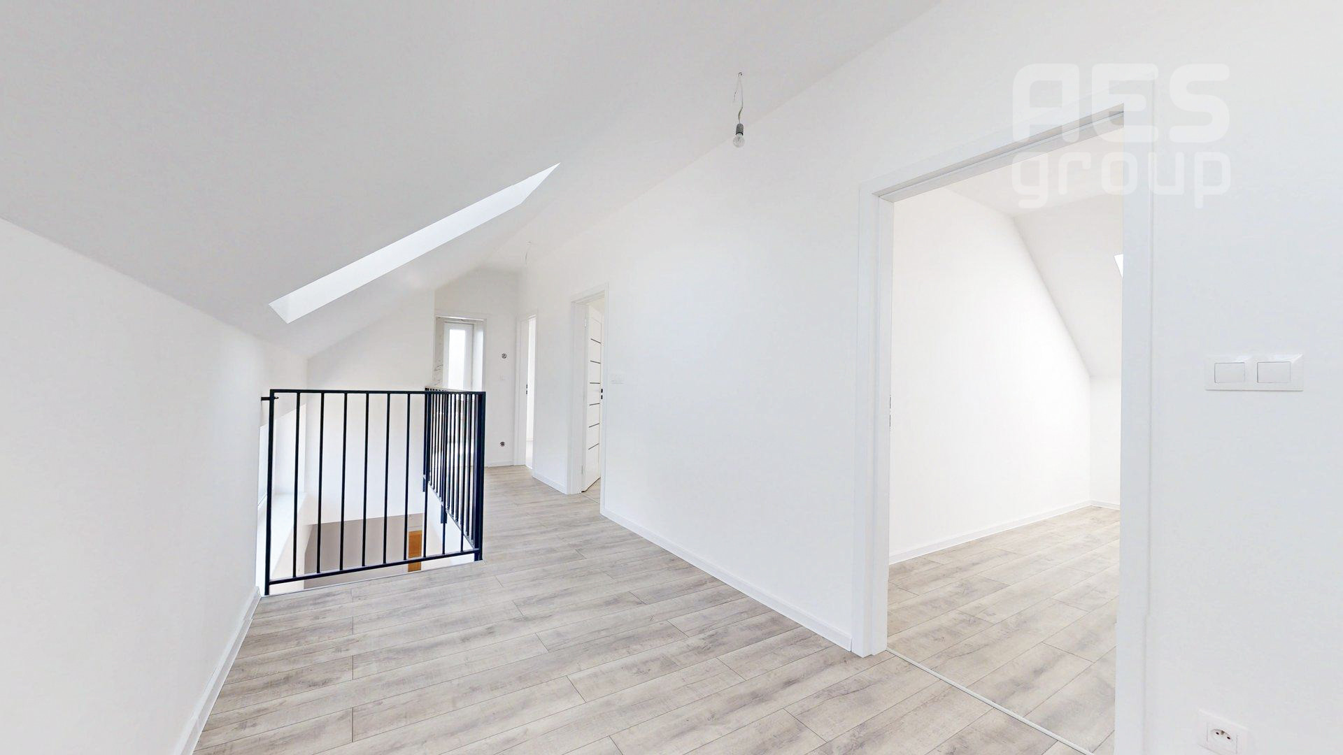 2NP: schodisko, chodba, kúpeľňa, 2x izba, spálňa so šatníkom a kúpeľnou.