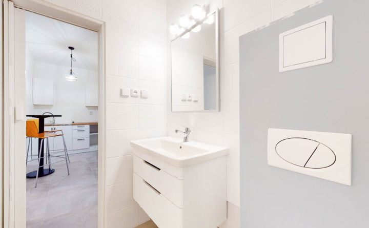 Pozostáva zo zádveria, izby, kuchyne, kúpeľne so sprchovým kútom a WC.