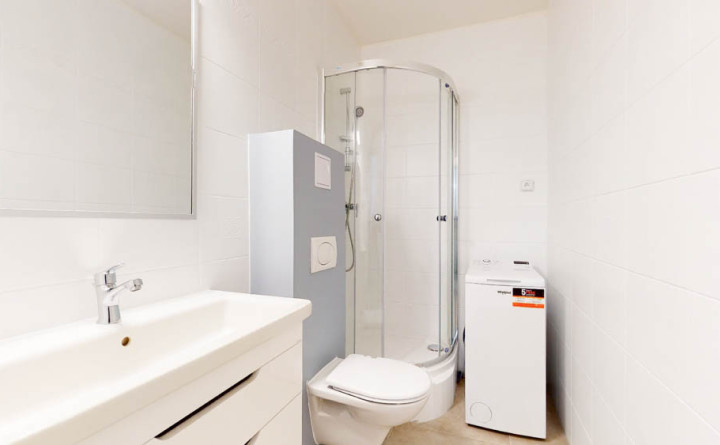 Štandard vybavenia: plastové okná, exteriérové žalúzie, parkety v izbe, dlažba v zádverí, kuchyni, kúpeľni a WC, kuchynská linka, chladnička s mrazničkou, mikrovlnná rúra a práčka.